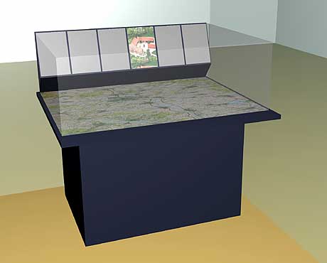 Zusätzlich zur Ortsanzeige können sich die Besucher Fotos und Textinformationen auf einem Display abrufen, das mit diesem Modell gekoppelt ist.