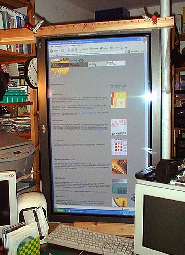 Die Projektion ist im ungewöhlichen 9:16 Hochformat gestaltet und wird auf einem 42"-Plasmamonitor präsentiert.