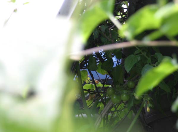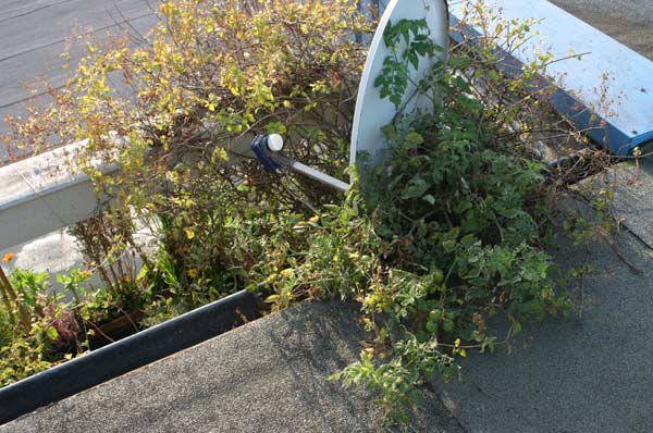 Hinter der Sat-Schüssel sind jetzt die höchsten Tomaten zu ernten.